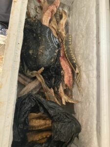 В ходе следственных мероприятий было установлено, что местный житель осуществил незаконную добычу и организовал хранение значительного количества водных биоресурсов, относящихся к особо ценным видам. Речь идет примерно о 50 килограммах осетровых и 80 килограммах лососевых пород рыб, которые включены в Красную книгу Российской Федерации и находятся под защитой международных договоров, участником которых является Россия. Изъятие данных видов из их естественной среды обитания законодательно запрещено.